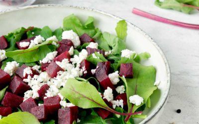 Aantal personen ± 2-3 INGREDIËNTEN 100 gr biologische bietenblad 100 gr biologische rucola 150 gr voorgekookte biologische rode biet 125 gram biologische geitenkaas 1 biologische sinaasappel 2 eetlepels biologische olijfolie vers gemalen zwarte peper vers...